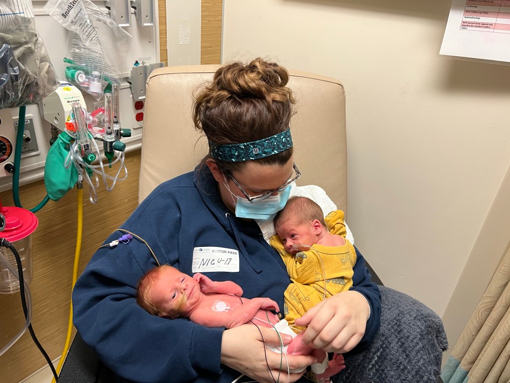 When having twins, a NICU stay is almost 80% guarantee. I would definitely bring preemie, and newborn outfits. The hospital with likely have some but you can’t take them home after. The nurses will help you with anything you need. If you need help learning how to swaddle, ask. If you need help breastfeeding, ask. The hospital I was at was a godsend! Make sure you ask about staying overnight. It will help you(mentally and physically) and help the babies. You have to make sure you are taking care of yourself also. If they have the “family room” option, take advantage of it as much as you can. staying at the family room will also help with getting used to the routines of the babies and you get to learn their little personalities and some techniques the nurses and doctors use for the babies.